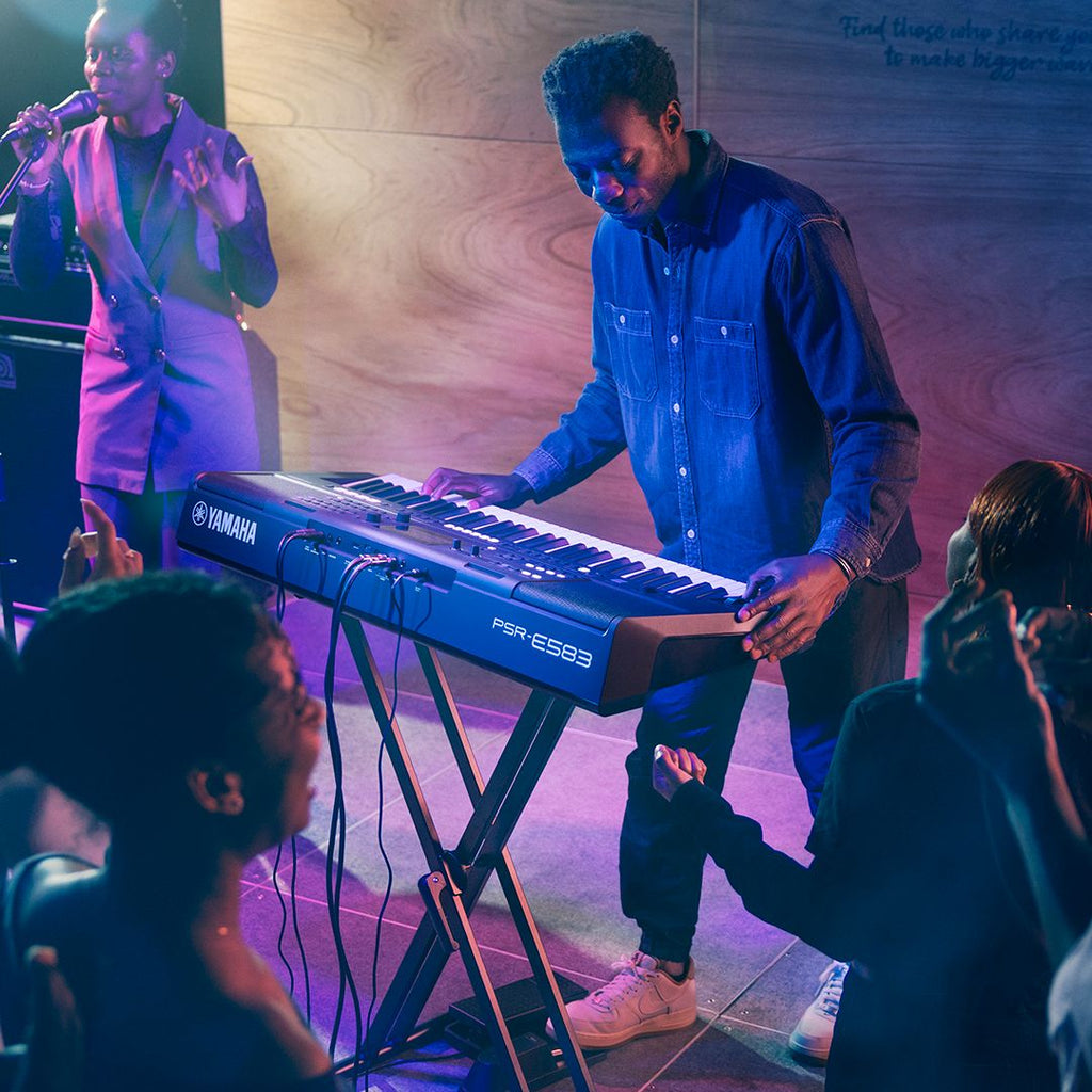 Designed for aspiring musicians, the Yamaha PSR-E583 is a 61-key portable keyboard packed with features, including a wide assortment of Voices and Styles, and optimized for global music-making.
