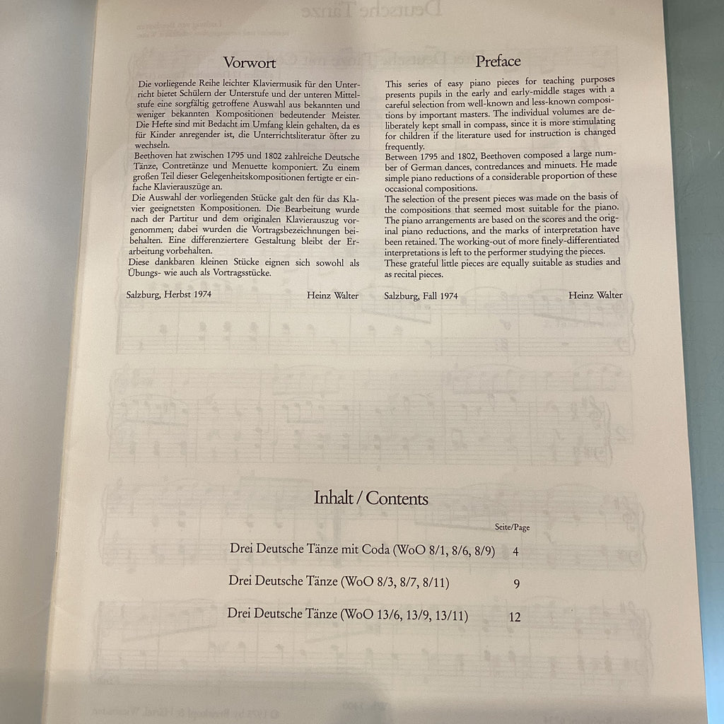Beethoven Deutsche Tänze für Klavier - German Dances for Piano - Edition Breitkopf 6734 - Edited by Heinz Walter