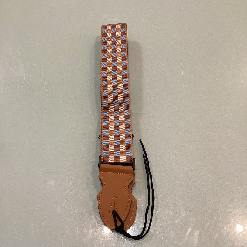 Bootsy Premium Woven Guitar Straps - Brown Turquoise Tan Chequered