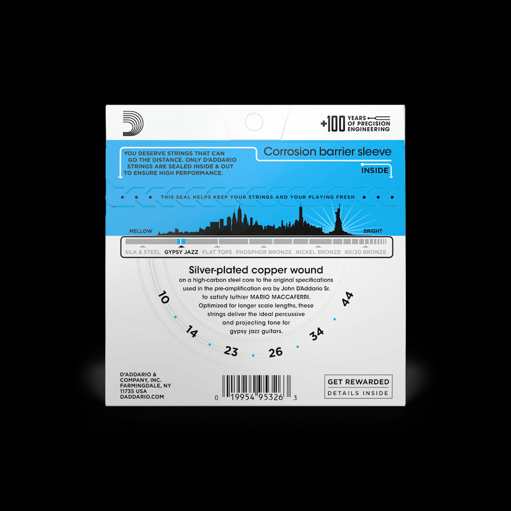 D'Addario Silver Plated Wound Gypsy Jazz Guitar Strings 10 - 44 - EJ83L